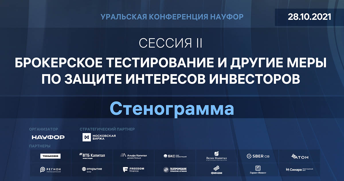 Алексей Тимофеев: Мы, кстати, тоже планируем не позже весны следующего года выпустить обзор нашей контрольной практики по нарушениям, связанным с мисселингом, ну или с недобросовестным предложением, продажей финансовых инструментов, откуда будет видно, что НАУФОР считает нарушением, что нарушением не считает. Мы такой обзор в отношении инвестиционного профилирования уже сделали, и он тоже будет обновляться. И, наверное, к весне следующего года мы подготовим дополнительные какие-то комментарии по поводу нарушений в области инвестиционного профилирования и опубликуем вместе с обзором нарушений, связанных с мисселингом.