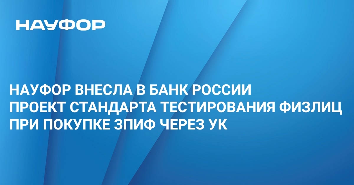 НАУФОР внесла в Комитет Банка России по базовым стандартам деятельности управляющих компаний инвестиционных фондов, паевых инвестиционных фондов и негосударственных пенсионных фондов проект базового стандарта защиты прав и интересов инвесторов, который в том числе устанавливает порядок проведения тестирования физических лиц - неквалифицированных инвесторов при приобретении ими инвестиционных паёв ЗПИФ, не ограниченных в обороте.