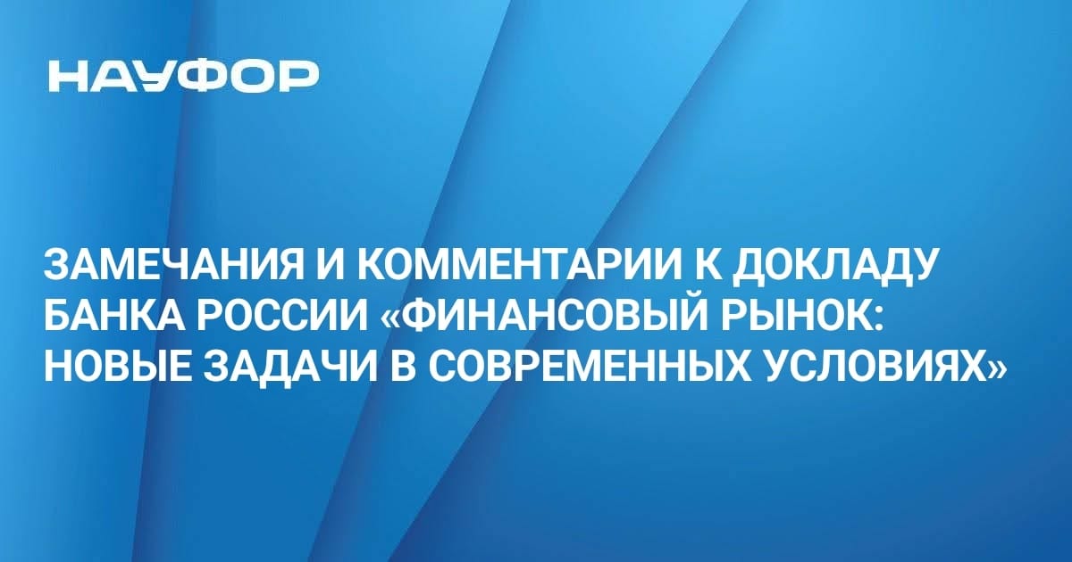 НАУФОР направила в Банк России замечания и комментарии к предложениям, сформулированным регулятором в докладе "Финансовый рынок: новые задачи в современных условиях".