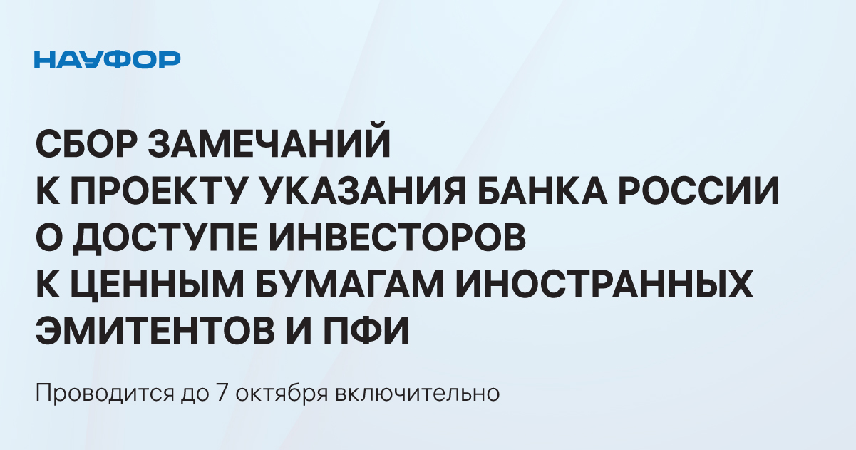 До 7 октября включительно НАУФОР проводит сбор замечаний и предложений к документу.