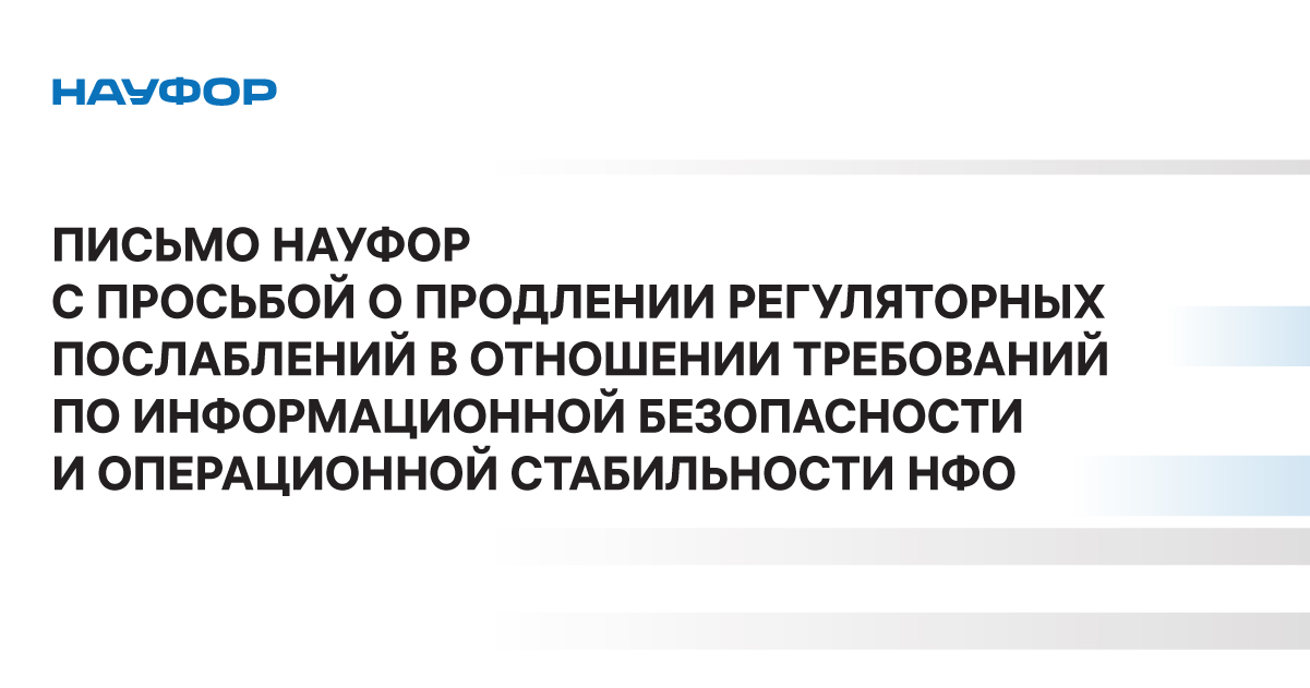 Национальная ассоциация участников фондового рынка направила в Банк России просьбу продлить до 1 января 2024 года регуляторные послабления для некредитных финансовых организаций в отношении требований Положений Банка России №757-П, №779-П и Указания Банка России № 5673-У.