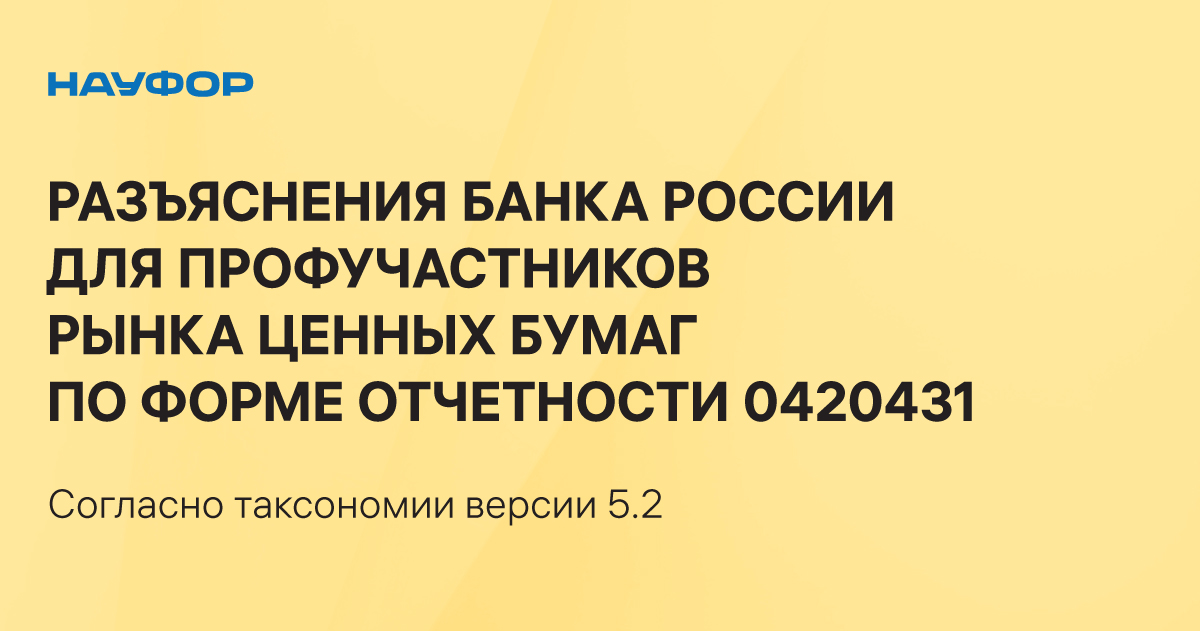 по порядку составления и представления отчетности по форме 0420431, которыми ПУРЦБ следует руководствоваться при подготовке отчетности, представляемой в Банк России согласно таксономии версии 5.2.