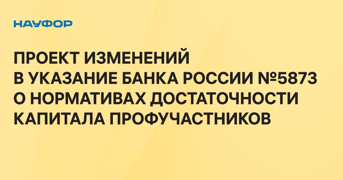 Банк России опубликовал проект о внесении изменений в Указание Банка России от 2 августа 2021 года № 5873-У «Об установлении обязательного норматива достаточности капитала для профессиональных участников рынка ценных бумаг, осуществляющих дилерскую, брокерскую деятельность, деятельность по управлению ценными бумагами и деятельность форекс-дилеров».