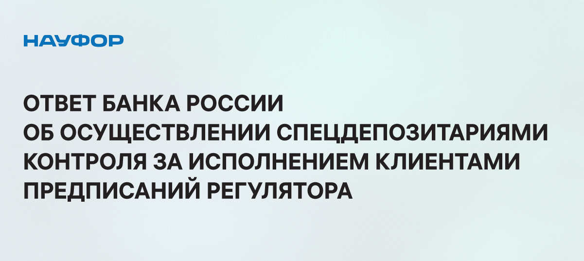 Об осуществлении спецдепозитариями контроля исполнения клиентами предписаний об устранении нарушений требований законодательства