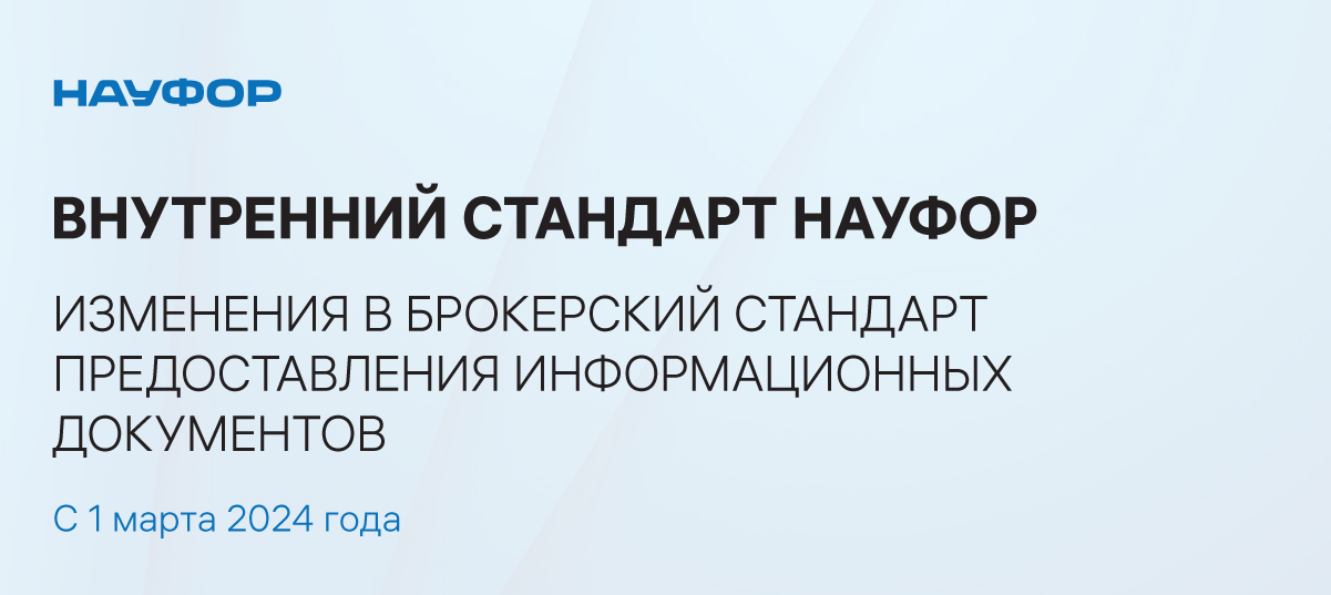 Совет директоров НАУФОР на заседании 30 января утвердил изменения во внутренний стандарт НАУФОР «Требования к предоставлению брокерами физическим лицам - получателям финансовых услуг информационных документов о финансовых инструментах».