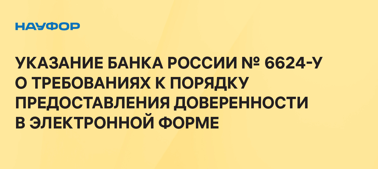 Банк России опубликовал Указание Банка России от 13.12.2023 № 6624-У «О требованиях к порядку предоставления доверенности в электронной форме, подтверждающей полномочия лица действовать от имени участников финансового рынка, указанных в части 2 статьи 17.2 Федерального закона от 6 апреля 2022 № 63-ФЗ «Об электронной подписи».