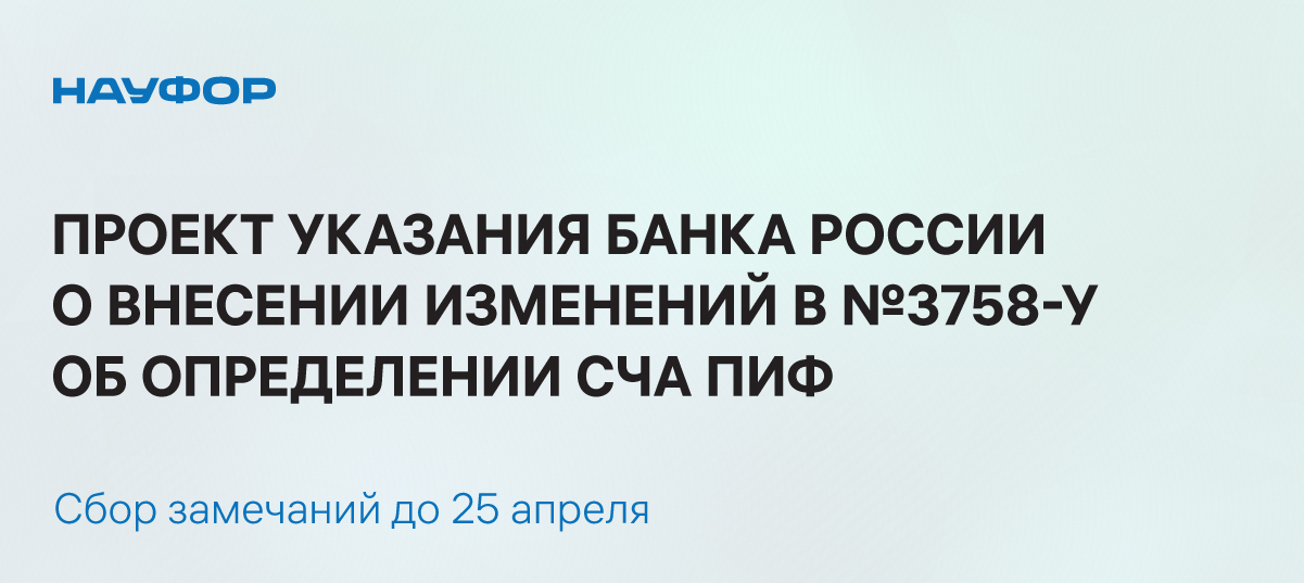 НАУФОР до 25 апреля включительно проводит со своих членов сбор замечаний и предложений к проекту, для внесения замечаний нужно заполнить форму и отправить ее на почту Павлу Седельникову sedelnikov@naufor.org.