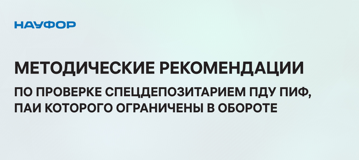 Комитет НАУФОР по деятельности специализированных депозитариев на заседании 13 июня согласовал Методические рекомендации по проверке правил (изменений) в правила доверительного управления закрытым/ интервальным паевым инвестиционным фондом, инвестиционные паи которого ограничены в обороте.
