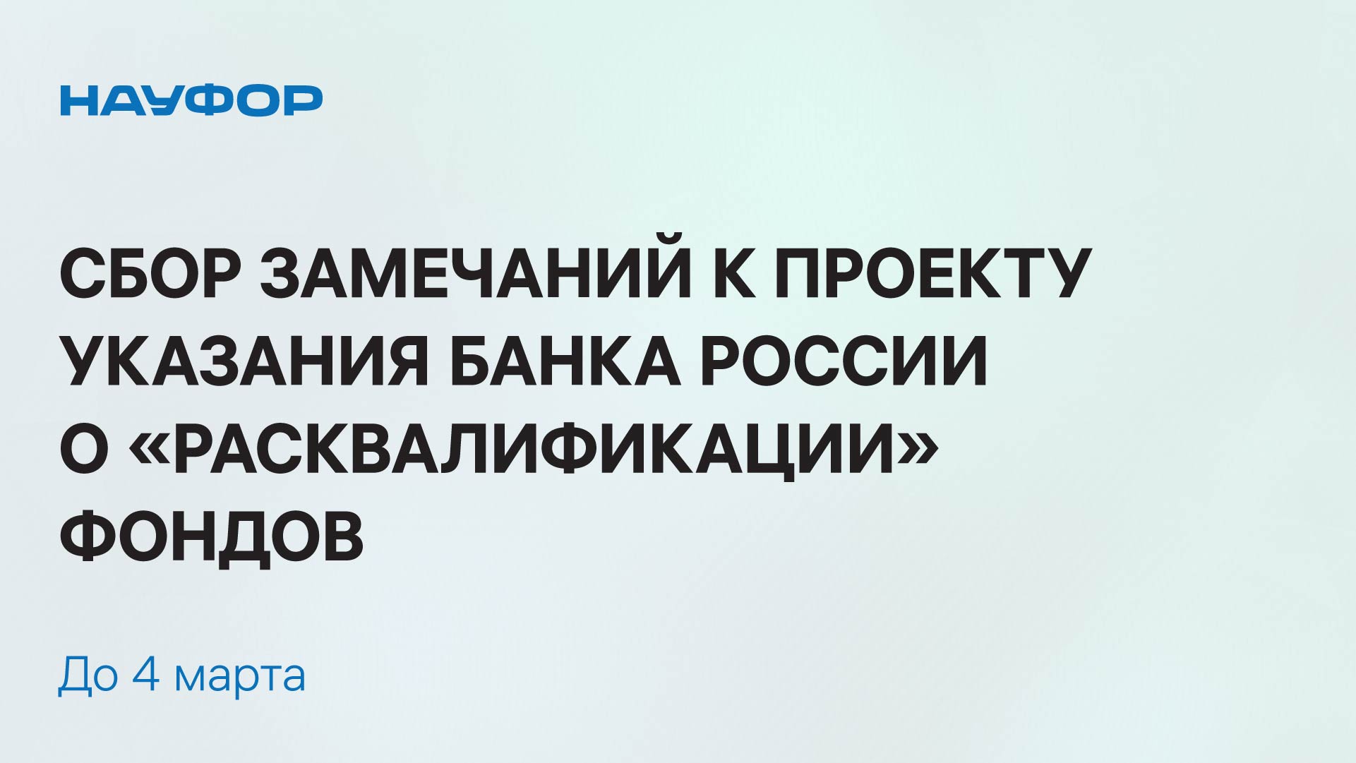 До 4 марта включительно НАУФОР проводит сбор замечаний и предложений к проекту.