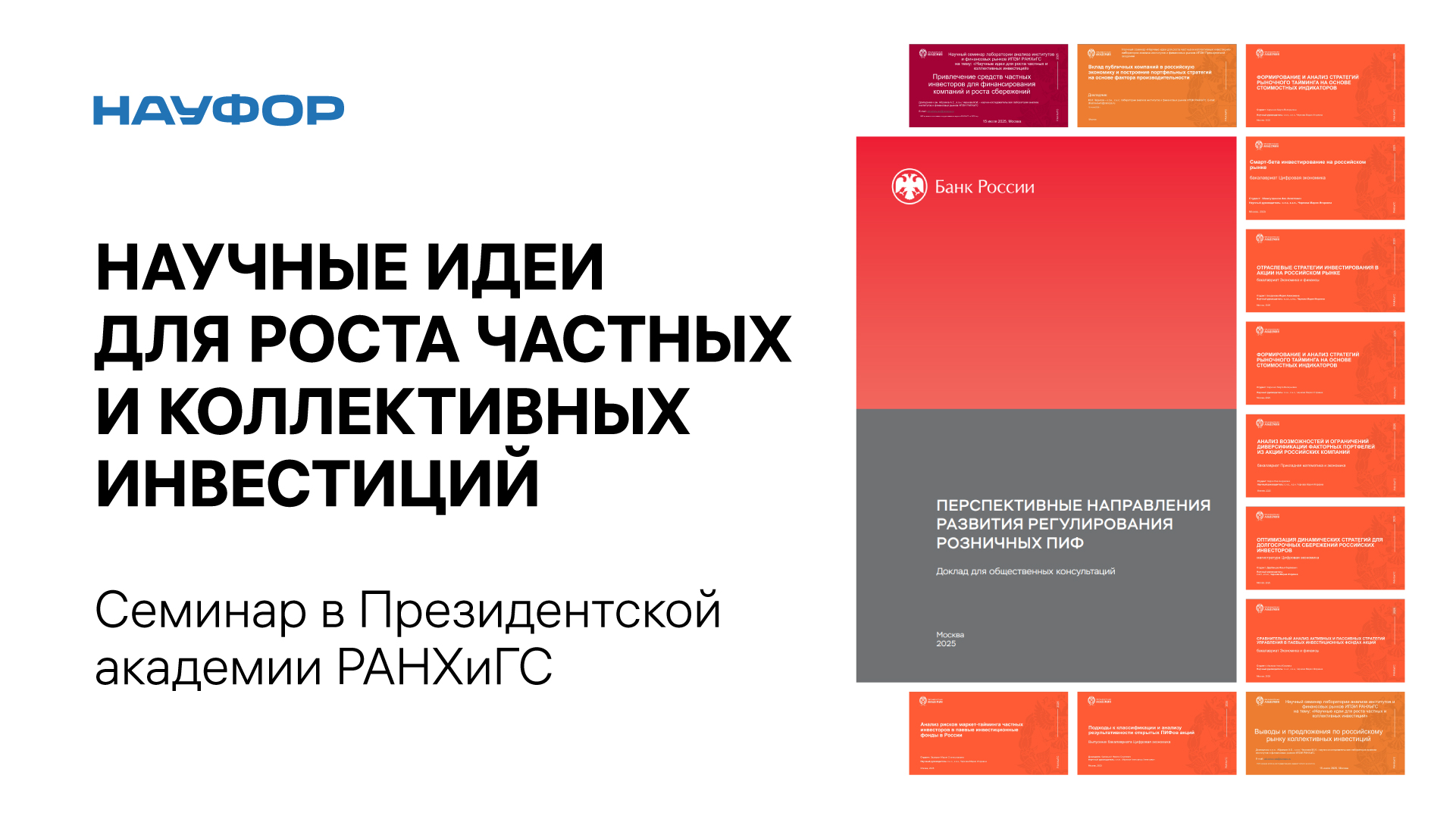 Лаборатория анализа институтов и финансовых рынков Президентской академии РАНХиГС провела 15 июля 2025 года научный семинар, приуроченный к выходу доклада Банка России для публичного обсуждения «Перспективные направления развития регулирования розничных ПИФ».