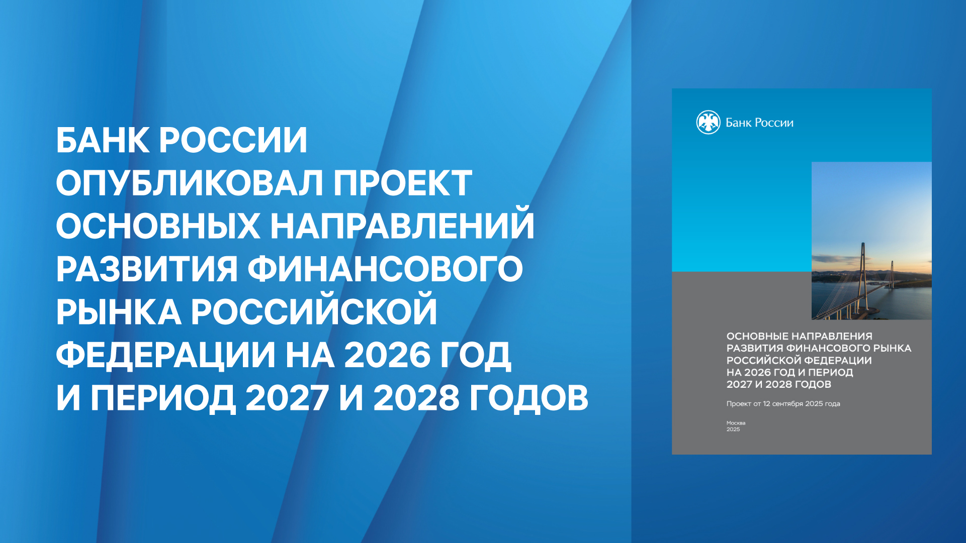 Банк России опубликовал Проект Основных направлений развития финансового рынка Российской Федерации на 2026 год и период 2027 и 2028 годов.