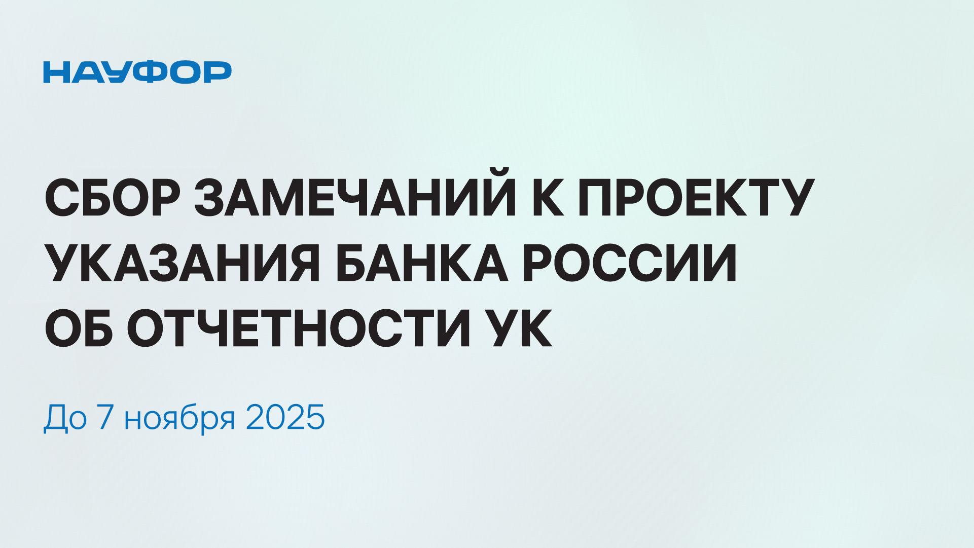 НАУФОР до 12.00 7 ноября проводит сбор комментариев к проекту, для внесения предложений и замечаний нужно заполнить форму и отправить ее на почту Павлу Седельникову sedelnikov@naufor.org.