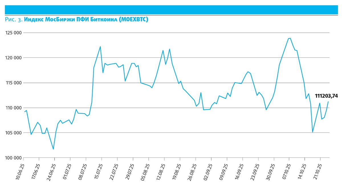Московская биржа в июне 2025 года начала расчет первого индекса цифровые валюты - Индекс МосБиржи ПФИ Биткоина (MOEXBTC). С этого момента на российском рынке появился бенчмарк, который позволил инвесторам и профессиональным участникам рынка получать объективную информацию о ценовых колебаниях цифровых монет.