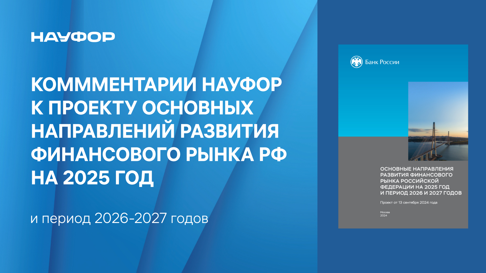 НАУФОР направила в Банк России комментарии к проекту основных направлений развития финансового рынка России на 2025 год и период 2026 и 2027 годов, представленному регулятором в сентябре этого года для обсуждения. Замечания НАУФОР учитывают требования Указа Президента РФ №309 от 7 мая 2024 года, которым поставлена задача увеличения к 2030 году капитализации фондового рынка до 66% ВВП.
