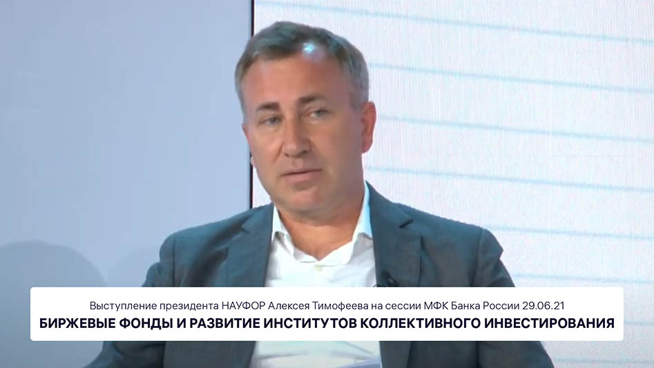 Президент НАУФОР Алексей Тимофеев выступил модератором сессии "Биржевые фонды: станут ли они центром притяжения розничных инвесторов в индустрию коллективного инвестирования?", состоявшейся 29 июня 2021 года в рамках Международного финансового конгресса Банка России.