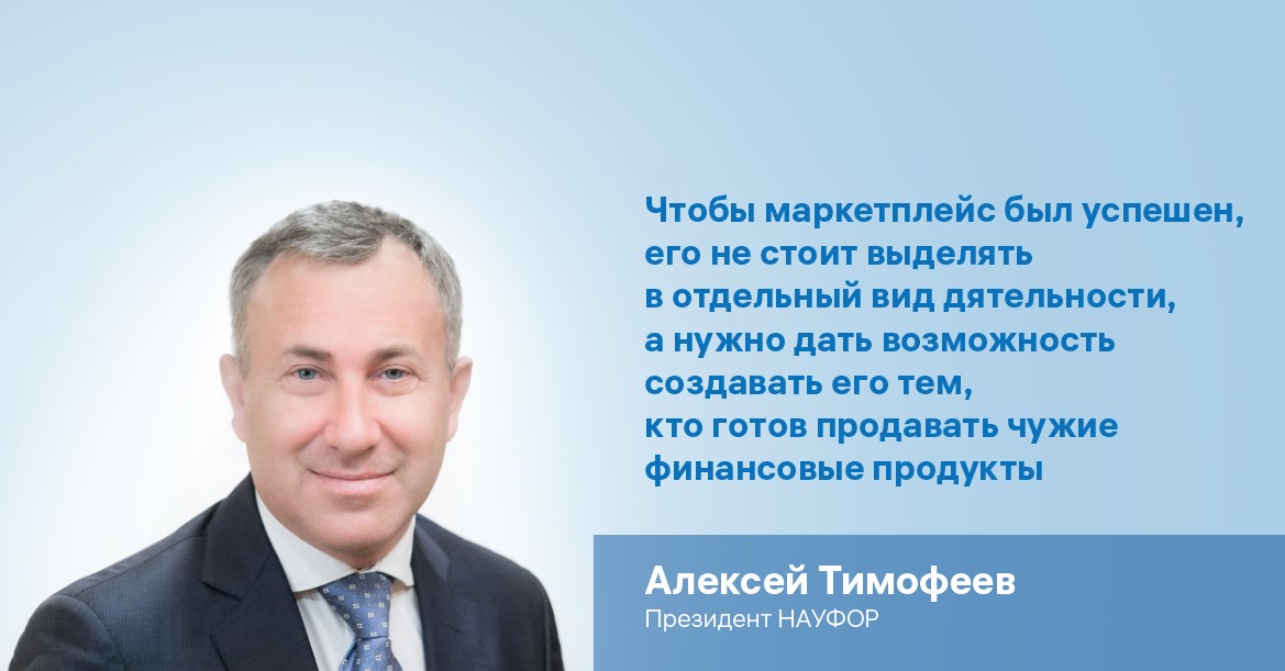 Он отмечает, что маркетплейс - это бизнес-модель посредников, открытая архитектура чужих финансовых инструментов. А на взгляд НАУФОР, его модель сейчас неверно принимается как вид организации торговли, и для того чтобы маркетплейс был успешен, его не следует выделять в отдельный вид деятельности, а нужно дать возможность создавать его тем, кто готов продавать чужие финансовые продукты. И мотив для этого очень мощен - сохранение своих клиентов, несмотря на то, что они будут приобретать чужие финансовые инструменты, добавил Тимофеев.