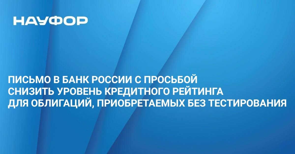 Национальная ассоциация участников фондового рынка направила в Банк России письмо с просьбой расширить уровень кредитного рейтинга облигаций, приобретение которых не требует тестирования физических лиц - неквалифицированных инвесторов, до высокого и умеренно высокого (до уровня «А-» включительно).