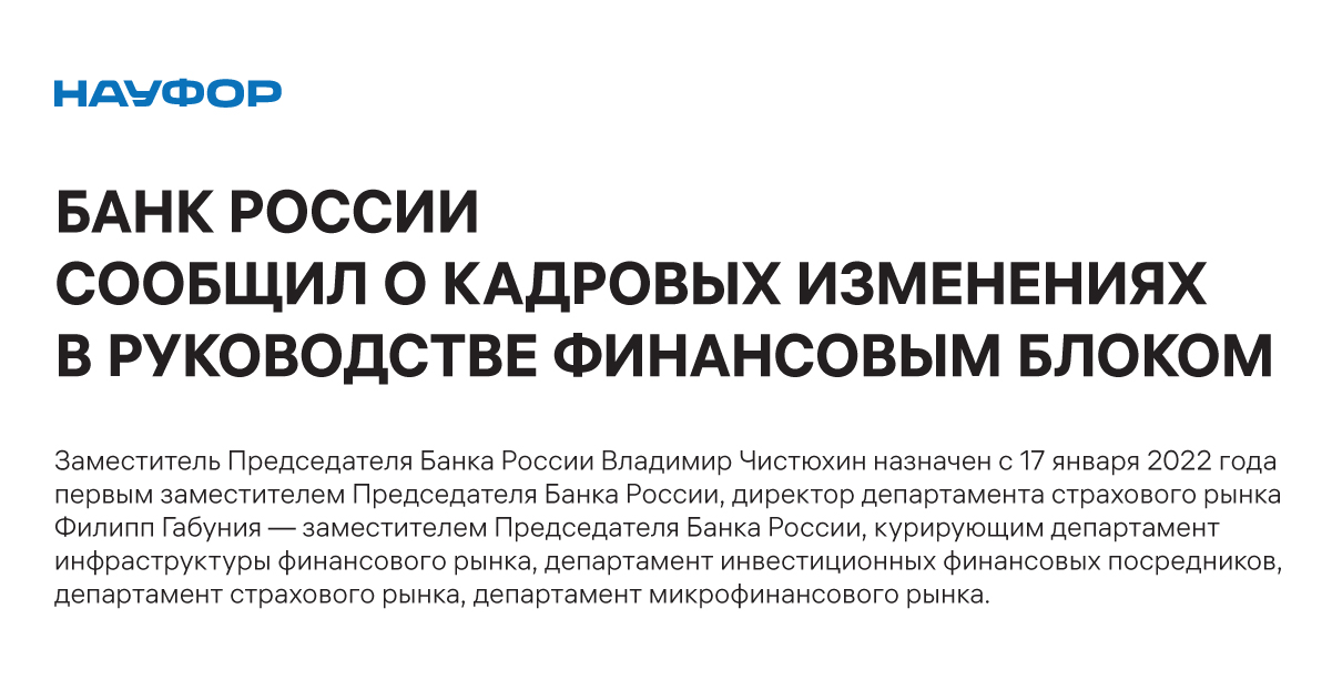 Директор Департамента страхового рынка Филипп Габуния с 17 января 2022 года займет пост заместителя Председателя Банка России. Он будет курировать: