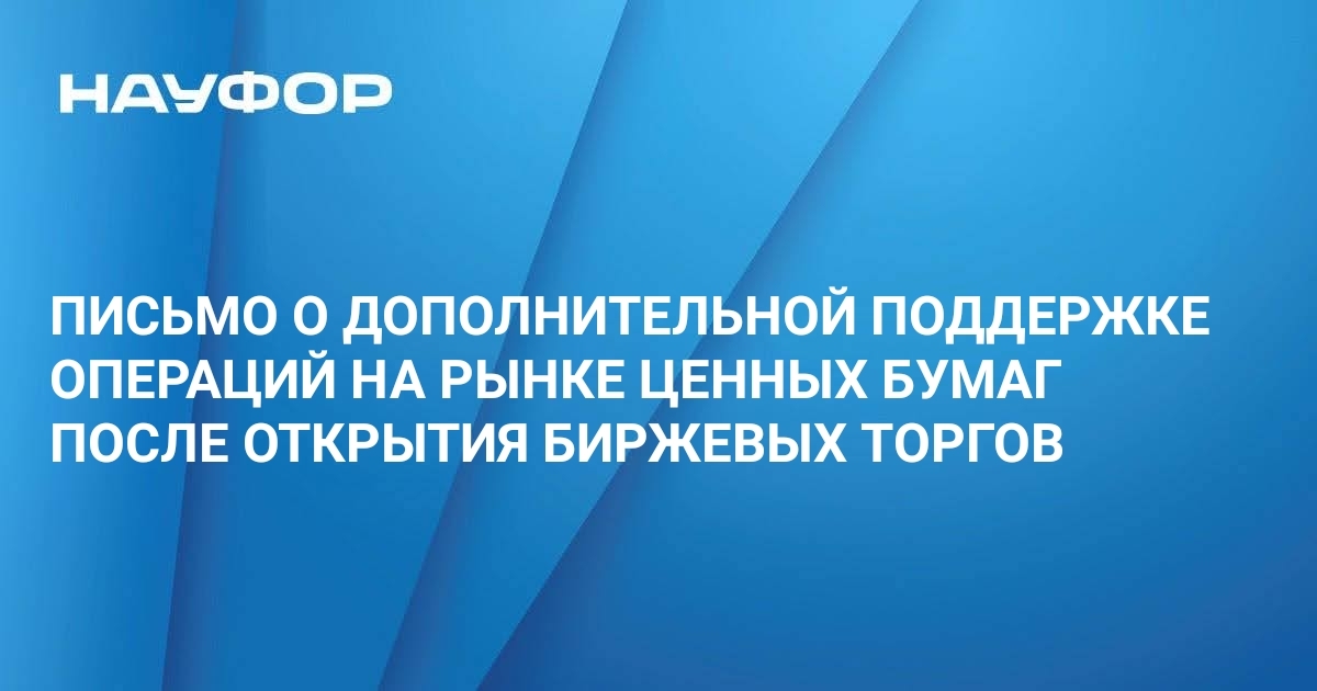 Национальная ассоциация участников фондового рынка просит Министерство финансов и Банк России рассмотреть вопрос о дополнительной поддержке операций на рынке ценных бумаг в течение ближайшего времени после открытия организованного рынка.