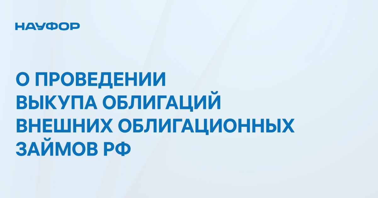 НАУФОР предлагает своим членам, а также их клиентам воспользоваться публичной офертой Министерства финансов Российской Федерации на выкуп облигаций внешних облигационных займов Российской Федерации выпуска № 12840060V «Россия-2022» (ISIN XS0767472458) с погашением 4 апреля 2022 г.