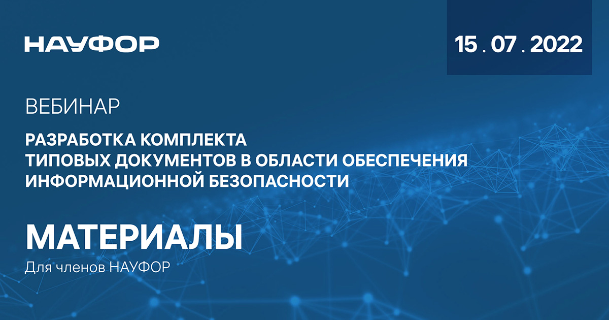 Национальная ассоциация участников фондового рынка в пятницу, 15 июля, провела вебинар по вопросам подготовки типовой документации в области информационной безопасности некредитными финансовыми организациями.