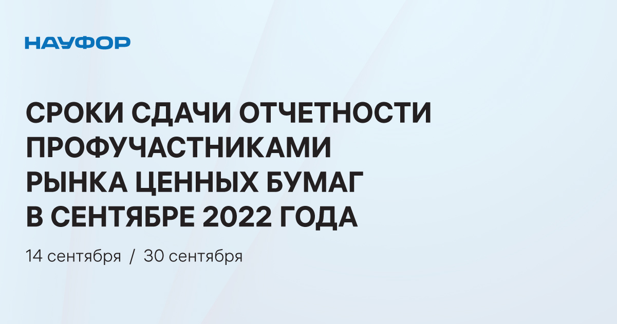 НАУФОР напоминает своим членам о сроках сдачи отчетности за август 2022 года - 14 сентября и 30 сентября.