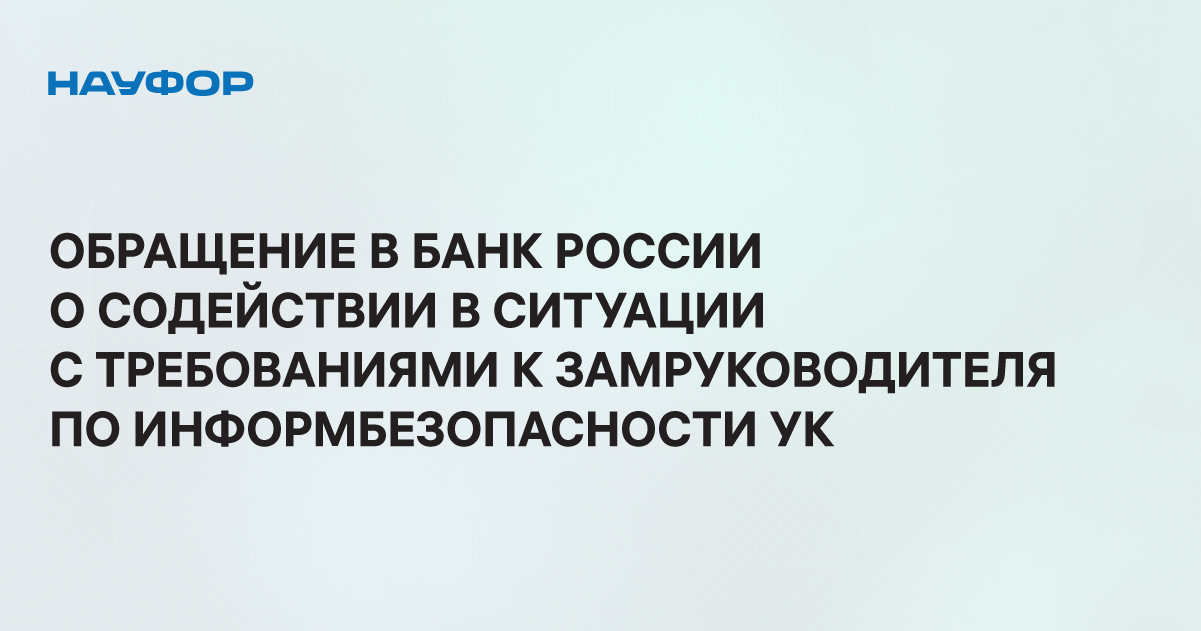 В августе 2022 год НАУФОР направила в Банк России просьбу оказать содействие в разрешении ситуации, связанной с соответствием должности заместителя руководителя по информационной безопасности требованиям, установленным действующим законодательством РФ. Заместитель руководителя субъекта критической информационной инфраструктуры (КИИ), являющегося управляющей компанией, должен одновременно соответствовать как требованиям Типового положения, утвержденного Постановлением Правительствк РФ от 15 июля 2022 года №1272", так и закону 26 июля 2017 года № 187-ФЗ «О безопасности критической информационной инфраструктуры РФ», в том числе, пройти процедуру предварительного согласования в Банке России на соответствие требованиям к заместителю единоличного исполнительного органа управляющей компании.