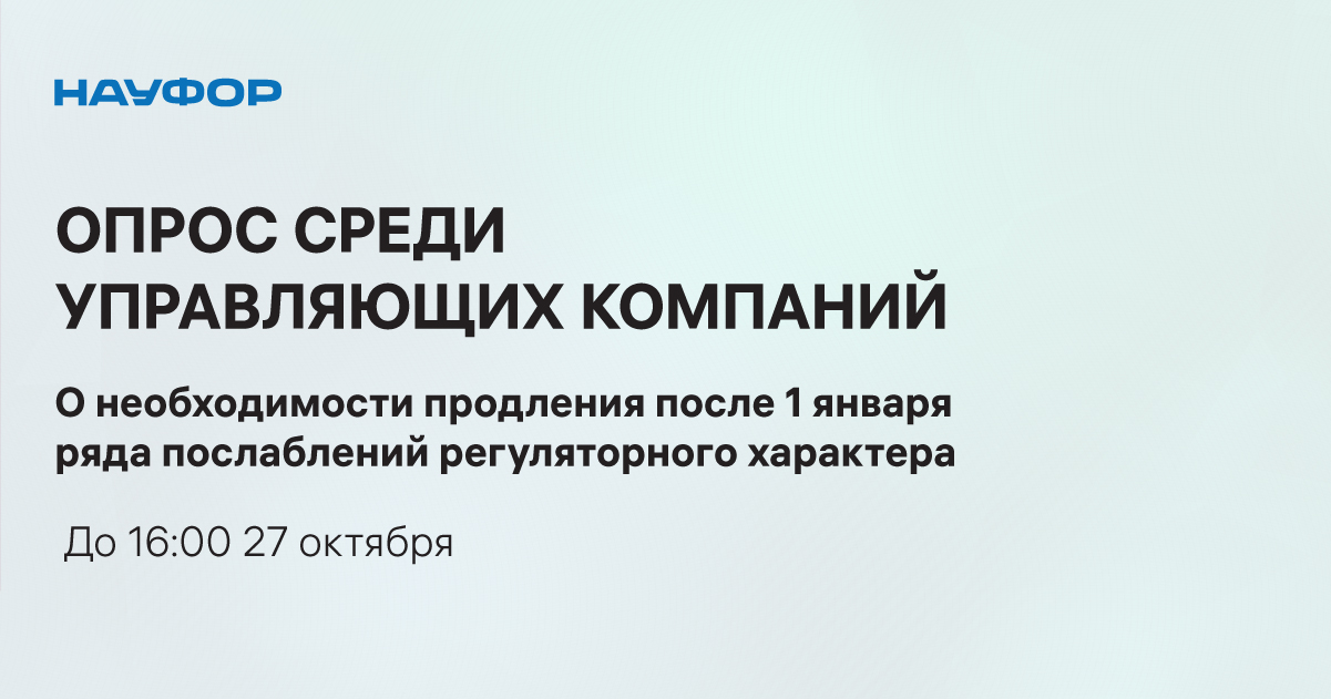 Просим вас принять участие в опросе, который проводится НАУФОР в целях обсуждения с Банком России целесообразности продления ряда послаблений регуляторного характера, предусмотренных