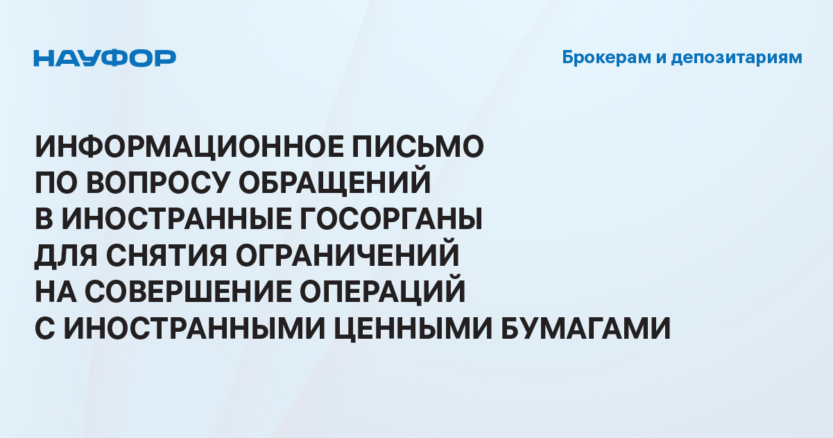 В связи с этим рекомендуем членам НАУФОР при наличии планов по обращению за получением указанного разрешения в интересах своих клиентов, раскрывать или иным образом доводить до сведения клиентов соответствующую информацию.