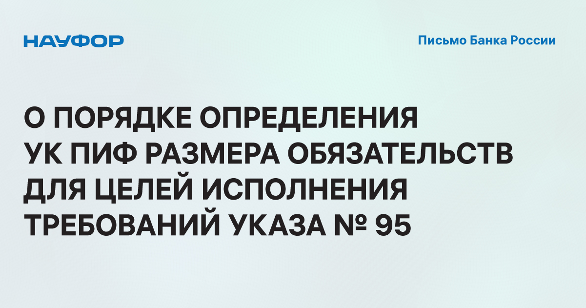 Банк России направил 7 февраля 2023 года информационное письмо "О порядке определения УК ПИФ размера обязательств для целей исполнения требований Указа № 95"1.