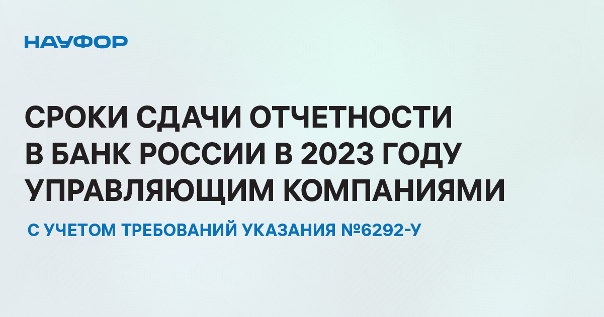 НАУФОР напоминает своим членам - управляющим компаниям - о сроках сдачи отчетности в Банк России в 2023 году с учетом требований Указания №6292-У.