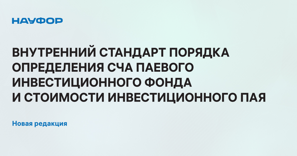 Совет директоров НАУФОР на заседании 12 апреля утвердил новую редакцию внутреннего стандарта порядка определения стоимости чистых активов паевого инвестиционного фонда и стоимости инвестиционного пая.