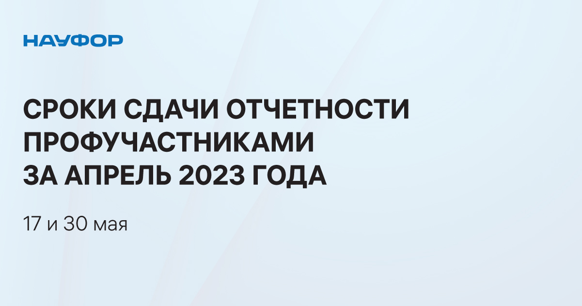 НАУФОР напоминает своим членам - профессиональным участникам рынка ценных бумаг о сроках сдачи отчетности за апрель 2023 года - 17 и 30 мая.