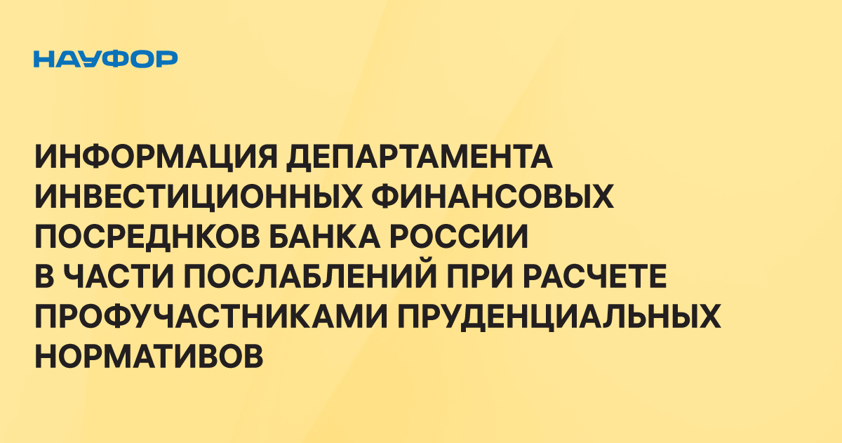 Информация департамента инвестиционных финансовых посредников Банка России о временных регуляторных послаблениях