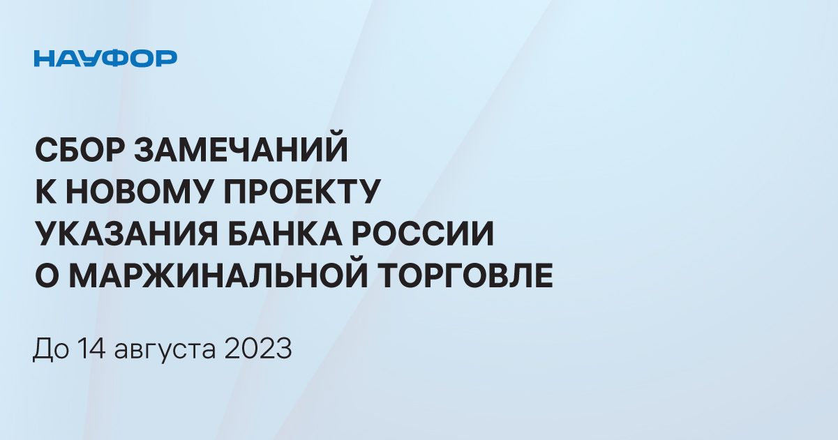 НАУФОР проводит сбор замечаний и предложений к проекту до 14 августа включительно.