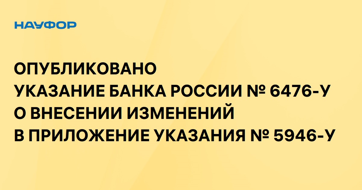 На сайте Банка России 11 августа 2023 года опубликовано Указание Банка России от 28.06.2023 № 6476-У «О внесении изменений в приложение к Указанию Банка России от 27 сентября 2021 года № 5946-У».