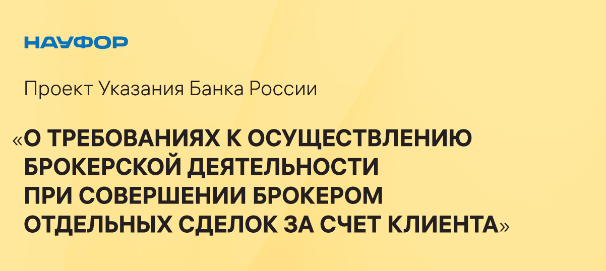 Банк России 27 сентября 2023 года опубликовал Проект Указания «О требованиях к осуществлению брокерской деятельности при совершении брокером отдельных сделок за счет клиента»