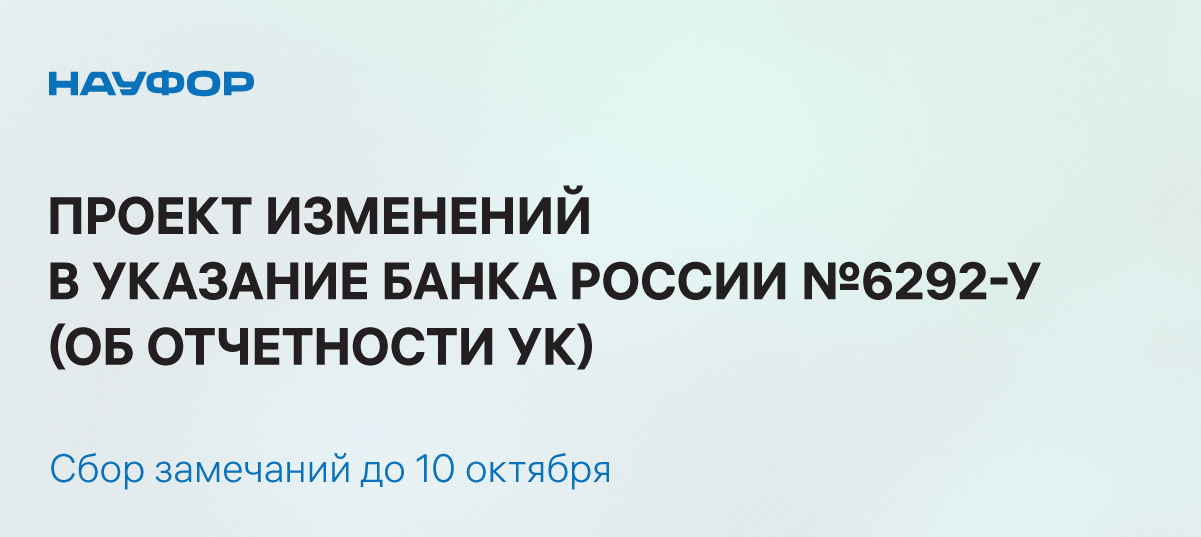Банк России опубликовал Проект Указания «О внесении изменений в Указание Банка России от 5 октября 2022 года №6292-У «Об объеме, формах, порядке и сроках составления и представления в Банк России отчетов акционерными инвестиционными фондами, управляющими компаниями инвестиционных фондов, паевых инвестиционных фондов и негосударственных пенсионных фондов».