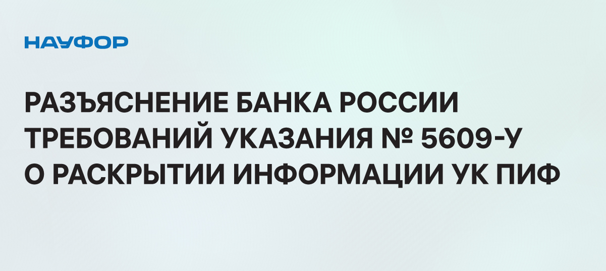 Департамент инвестиционных финансовых посредников Банка России (далее – Департамент) для целей обеспечения соблюдения требований Указания № 5609-У1 просит Национальную ассоциацию участников фондового рынка довести до своих членов, являющихся управляющими компаниями паевых инвестиционных фондов (далее соответственно – управляющие компании, фонд) и специализированными депозитариями, следующее разъяснение о порядке применения указанных требований.