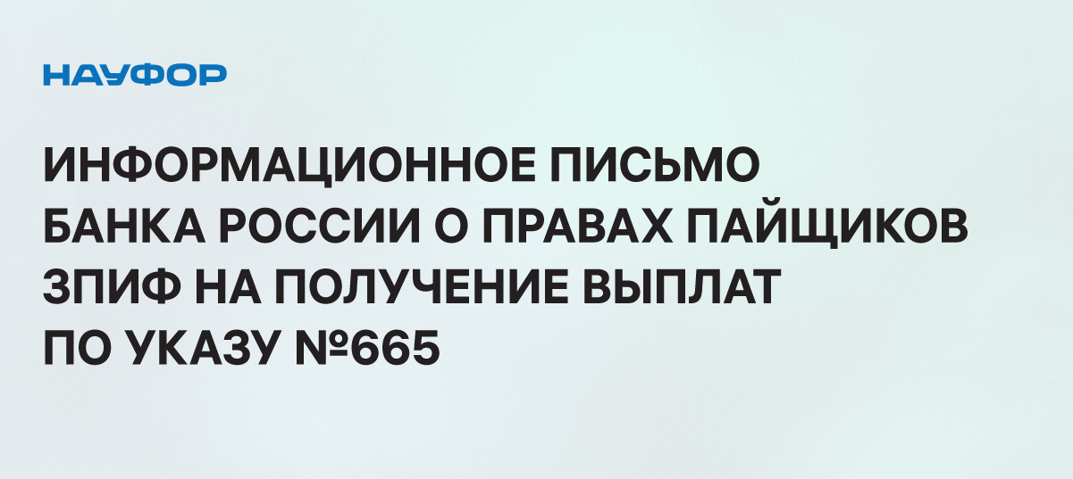 Информационное письмо Банка России о правах пайщиков Закрытого паевого инвестиционного фонда на получение выплат, предусмотренных подпунктом «а» пункта 12 Указа № 665