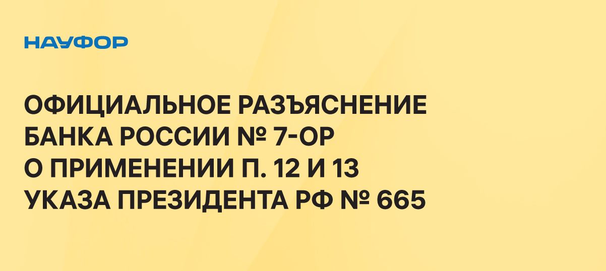 1. Руководствуясь подпунктом «а» пункта22 Указа Президента Российской Федерации от9 сентября2023 года №665 «О временном порядке исполнения перед резидентами и иностранными кредиторами государственных долговых обязательств Российской Федерации, выраженных в государственных ценных бумагах, номинальная стоимость которых указана в иностранной валюте, и иных обязательств по иностранным ценным бумагам» (далее- Указ №665), Банк России разъясняет вопросы применения положений пунктов12 и13 Указа №665.