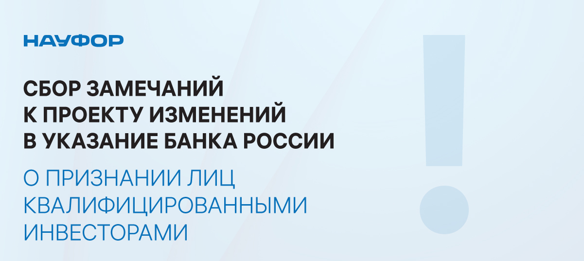 НАУФОР проводит до 2 февраля 2024 года включительно сбор замечаний и предложений к проекту. Замечания необходимо присылать в виде заполненной формы на адрес электронной почты Ольги Родзяновой rodzyanova@naufor.org.