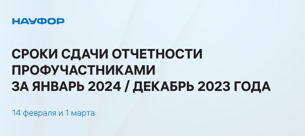 НАУФОР напоминает своим членам - профессиональным участникам рынка ценных бумаг о сроках представления в Центральный Банк отчетности и иной информации за январь 2024 /декабрь 2023 года.