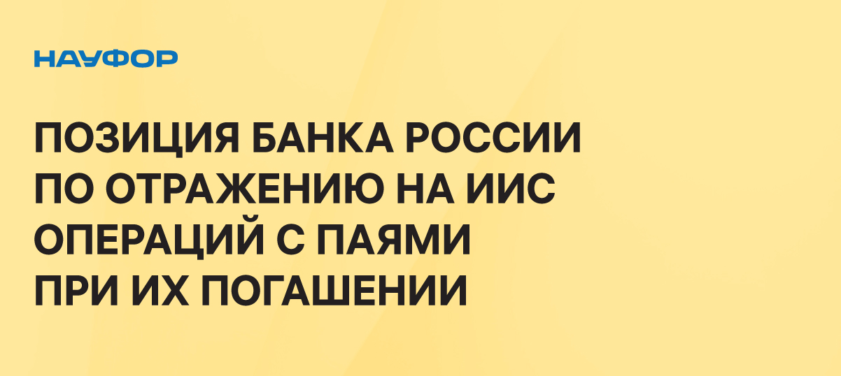 Уважаемые члены НАУФОР, в целях формирования единообразной практики обращаем внимание на позицию Банка России в отношении отражения на ИИС операций с инвестиционными паями при их погашении, в соответствии с полученным письмом ДИФР Банка России 2 мая.