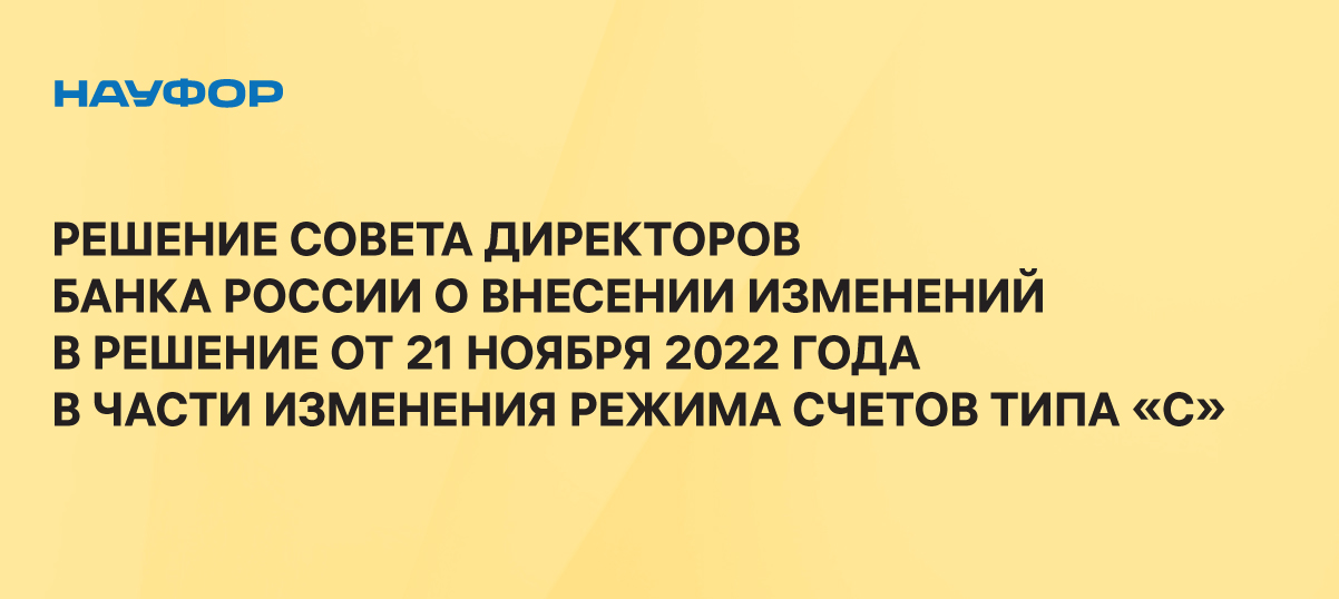 о внесении изменений в решение Совета директоров Банка России от 21 ноября 2022 года (в части изменения режима счетов типа «С»)