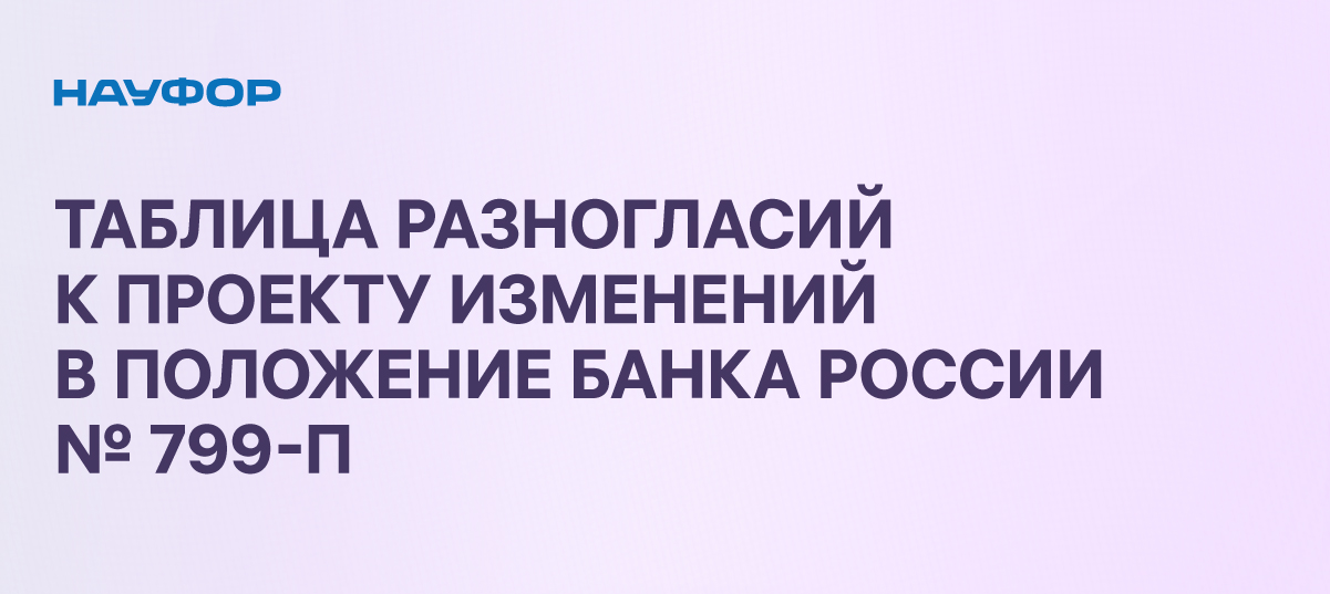 Таблица разногласий, сформированная после завершения процедуры оценки регуляторного воздействия проекта Указания Банка России о внесении изменений в Положение №799-П, была опубликована НАУФОР на прошлой неделе. По большей части они носят технический характер.