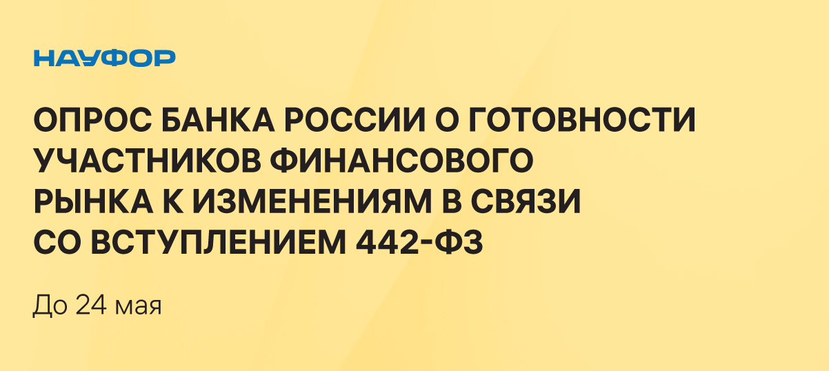 Банк России просит пройти опрос о готовности к изменениям, связанным со вступлением в силу с 1 июля 2024 года ФЗ №4421.