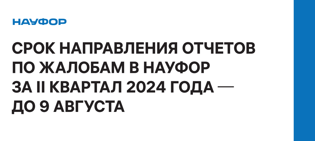 Напоминаем вам, что в соответствии с требованиями Базовых стандартов защиты прав и интересов физических и юридических лиц - получателей финансовых услуг, оказываемых членами саморегулируемых организаций в сфере финансового рынка, объединяющих брокеров/управляющих/депозитариев/инвестиционных советников/регистраторов до 9 августа включительно вы должны направить в НАУФОР отчеты по обращениям (жалобам) клиентов за II квартал 2024 года.