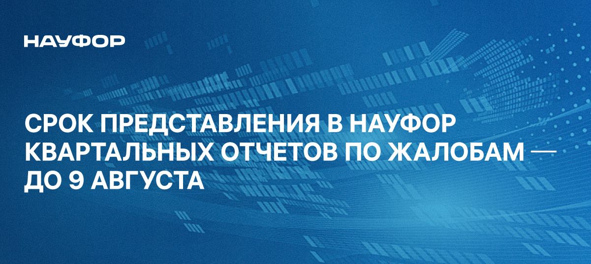 Напоминаем вам, что в соответствии с требованиями Базовых стандартов защиты прав и интересов физических и юридических лиц - получателей финансовых услуг, оказываемых членами саморегулируемых организаций в сфере финансового рынка, объединяющих брокеров/управляющих/депозитариев/инвестиционных советников/регистраторов до 9 августа включительно вы должны направить в НАУФОР отчеты по обращениям (жалобам) клиентов за II квартал 2024 года.