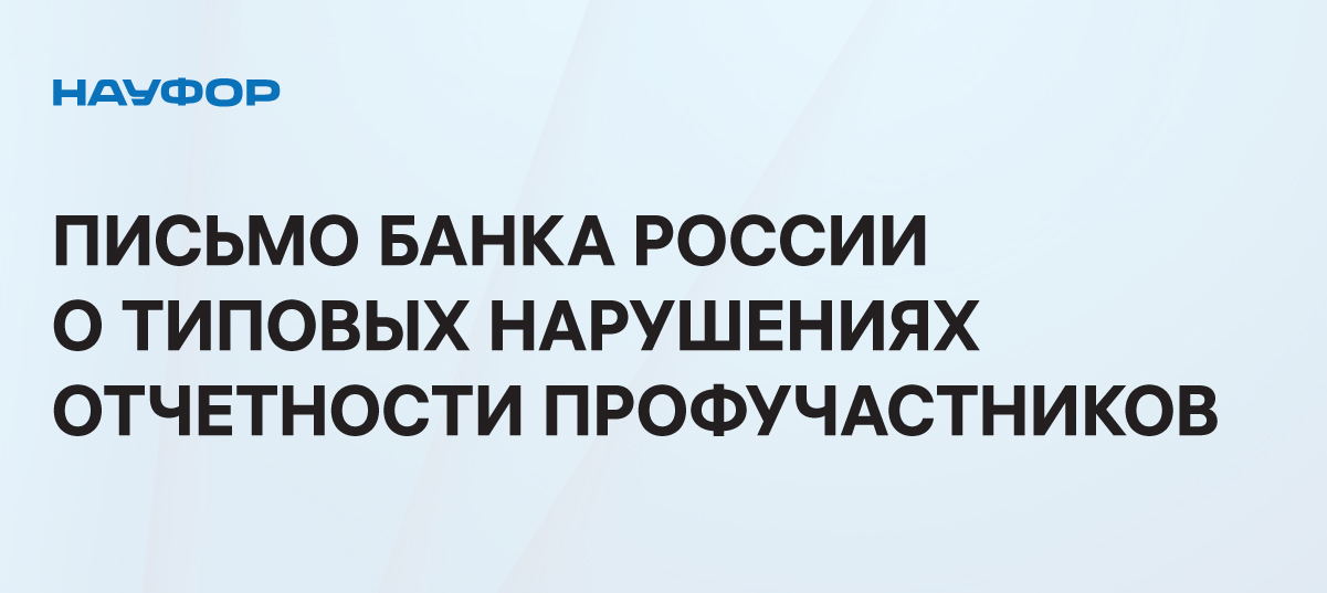 В целях предоставления ПУРЦБ корректных сведений в Отчетности Департамент, в дополнение к ранее направленным письмам2, просит НАУФОР проинформировать своих членов о типовых нарушениях, допускаемых организациями при представлении Отчетности: